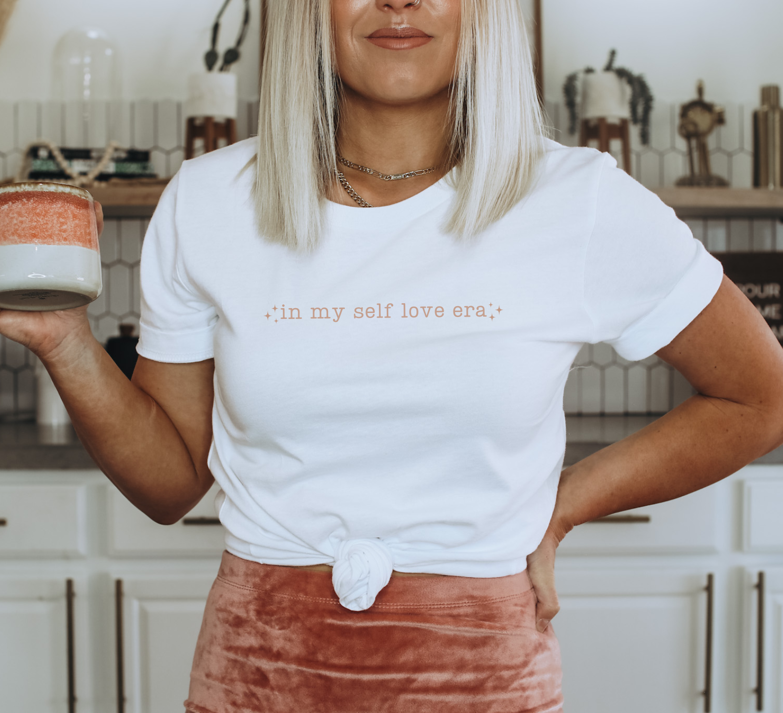 This classic, stylish t-shirt is made from 100% organic cotton for softness and comfort. At the chest, a meaningful message of self-love offers a daily reminder to practice self-care and prioritize your well-being.